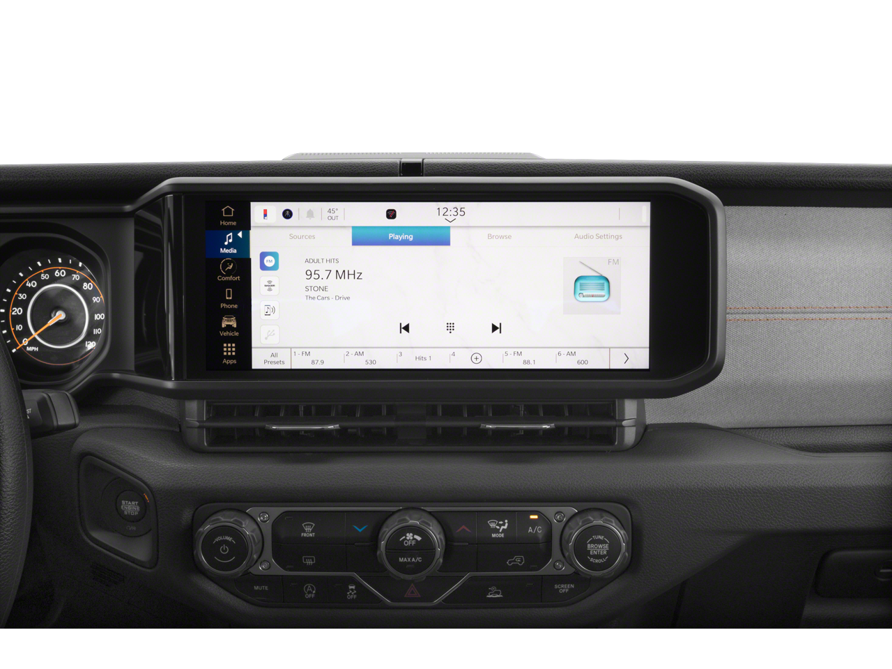 110 Mph Vehicle Max Speed Calibration, 12.3 Touchscreen Display, 2-Piece Body Color Fender Flares, 3.73 Rear Axle Ratio, 4-Wheel Disc Brakes, 4G LTE Wi-Fi Hot Spot, 8 Speakers, ABS brakes, Advanced Brake Assist, Air Conditioning, Air Conditioning with Auto Temp Control, Alexa Built-in, AM/FM radio: SiriusXM with 360L, Apple CarPlay, Apple CarPlay/Android Auto, Automatic Headlamps, Body Color 3-Piece Hard Top, Brake assist, Central ADAS Decision Module (CADM), Cluster 7.0 TFT Color Display, Compass, Connectivity - US/Canada, Corning Gorilla Glass, Daytime Running Lamp System, Daytime Running Lamps LED Accents, Deep Tint Sunscreen Windows, Delay-off headlights, Driver door bin, Driver vanity mirror, Dual front impact airbags, Dual front side impact airbags, Electronic Stability Control, Emergency/Assistance Call, For Details, Visit DriveUconnect.com, Freedom Panel Storage Bag, Front anti-roll bar, Front Bucket Seats, Front Center Armrest w/Storage, Front Door Locks 2-Door Passive Entry, Front fog lights, Front LED Fog Lamps, Front License Plate Bracket, Front reading lights, Full Length Floor Console Premium Armrest, Full Speed Forward Collision Warning Plus, Google Android Auto, Hard Seat Back, Heated Front Seats, Heated Steering Wheel, Illuminated entry, Integrated Center Stack Radio, Integrated roll-over protection, Leather Wrapped Park Brake Handle, Leather Wrapped Shift Knob, LED Headlamp and Fog Lamp Group, LED Premium Reflector Headlamps, Low tire pressure warning, Manufacturer's Statement of Origin, MOPAR All-Weather Slush Mats, Normal Duty Plus Suspension, Normal Duty Suspension, Occupant sensing airbag, Outside temperature display, Overhead airbag, Panic alarm, ParkView Rear Back-Up Camera, Passenger door bin, Passenger vanity mirror, Power 4-Way Driver Lumbar Adjust, Power 4-Way Passenger Lumbar Adjust, Power Adjust 8-Way Driver Seat, Power Adjust 8-Way Front Passenger Seat, Power Heated Mirrors, Power steering, Power windows, Premium Door Trim Panel, Premium McKinley Trimmed Seats, Premium Wrapped Steering Wheel, Quick Order Package 24H Sahara, Radio data system, Radio: Uconnect 5 with 12.3 Display, Rear anti-roll bar, Rear Armrest with Cupholder Seat, Rear reading lights, Rear Sliding Window, Rear Window Defroster, Remote keyless entry, Remote Start System, Sahara, Sahara Badge Neutral Gray, Security Alarm, SiriusXM Radio Service, SiriusXM with 360L, Speed control, Split folding rear seat, Steering wheel mounted audio controls, Sun Visors with Illuminated Vanity Mirrors, Tachometer, Telescoping steering wheel, Tilt steering wheel, Traction control, Trip computer, Universal Garage Door Opener, USB Host Flip, Variably intermittent wipers, Voltmeter, Wheels: 17 x 7.5 Black Steel Styled, Wheels: 18 x 7.5 Machined/Painted Gray.