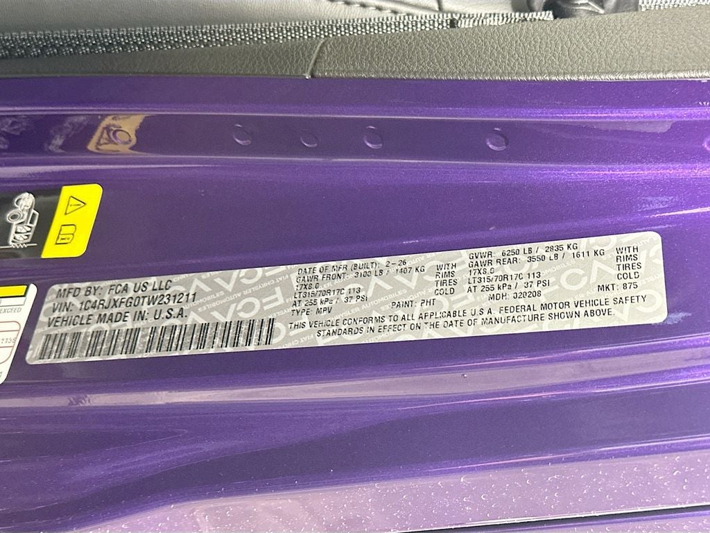 Wrangler Rubicon X, 4D Sport Utility, 3.6L V6 24V VVT, 8-Speed Automatic, 4WD, Reign, Black Leather, 12.3 Touchscreen Display, 4G LTE Wi-Fi Hot Spot, Acoustic Front Seat Area Carpet, Acoustic Laminated Front Door Glass, Alpine Premium Audio System, Apple CarPlay, Apple CarPlay/Android Auto, Auto High Beam Headlamp Control, Auto-Dimming Rear-View Mirror, Automatic temperature control, Aux Battery, Auxiliary Switches, Blind Spot and Cross Path Detection, Body Color 3-Piece Hard Top, Body Color Rubicon Highline Flare, Class II Receiver Hitch, Connected Travel and Traffic Services, Connectivity - US/Canada, Delay-off headlights, Freedom Panel Storage Bag, Front dual zone A/C, Front fog lights, Fully automatic headlights, Google Android Auto, HD Radio, Heated Front Seats, Heated Steering Wheel, Integrated Off-Road Camera, Integrated Voice Command with Bluetooth®, Leather Wrapped Park Brake Handle, Leather Wrapped Shift Knob, MOPAR Hardtop Headliner, Nappa Leather Seats, No Soft Top, ParkSense Rear Park Assist System, ParkView Rear Back-Up Camera, Performance Hood, Performance Suspension, Power 4-Way Driver Lumbar Adjust, Power 4-Way Passenger Lumbar Adjust, Power Adjust 8-Way Driver Seat, Power Adjust 8-Way Front Passenger Seat, Power Top Quarter Window Storage Bag, Premium Door Trim Panel, Quick Order Package 24Y Rubicon X, Radio: Uconnect 5 Navigation with 12.3 Display, Radio: Uconnect 5 with 12.3 Display, Rear Window Defroster, Rear Window Wiper/Washer, Remote keyless entry, Removable Rear Quarter Windows, Security system, SiriusXM with 360L, Sky One-Touch Power Top, Steel Front Bumper, Steel Performance Hood Package, Steel Rear Bumper, Steering wheel mounted audio controls, Trailer Tow and Auxiliary Switch Group, Trailer Tow Prep Package, Universal Garage Door Opener, 35 Tire Suspension, 4-Wheel Disc Brakes, 8 Speakers, ABS brakes, Air Conditioning, Alloy wheels, AM/FM radio: SiriusXM with 360L, Brake assist, Cloth Low-Back Bucket Seats, Compass, Driver door bin, Driver vanity mirror, Dual front impact airbags, Dual front side impact airbags, Electronic Stability Control, Emergency communication system: Jeep Connect, For More Info, Call 800-643-2112, Front anti-roll bar, Front Bucket Seats, Front Center Armrest w/Storage, Front License Plate Bracket, Front reading lights, Heated door mirrors, Illuminated entry, Integrated Center Stack Radio, Integrated roll-over protection, Low tire pressure warning, MOPAR All-Weather Floor Mats, MOPAR Hinge-Gate Reinforcement, Non-Lock Fuel Cap Without Discriminator, Occupant sensing airbag, Outside temperature display, Overhead airbag, Panic alarm, Passenger door bin, Passenger vanity mirror, Power door mirrors, Power steering, Power windows, Radio data system, Rear anti-roll bar, Rear reading lights, SiriusXM Radio Service, Speed control, Split folding rear seat, Stop-Start Dual Battery System, Tachometer, Telescoping steering wheel, Tilt steering wheel, Traction control, Trip computer, Variably intermittent wipers, Voltmeter, Wheels: 17 x 7.5 Machined/Painted Black, Wheels: 17 x 8 Machined with Black Pockets, Wrangler Rubicon X, 4D Sport Utility, 3.6L V6 24V VVT, 8-Speed Automatic, 4WD, Reign, Black Leather, 12.3 Touchscreen Display, 4G LTE Wi-Fi Hot Spot, Acoustic Front Seat Area Carpet, Acoustic Laminated Front Door Glass, Alpine Premium Audio System, Apple CarPlay, Apple CarPlay/Android Auto, Auto High Beam Headlamp Control, Auto-Dimming Rear-View Mirror, Automatic temperature control, Aux Battery, Auxiliary Switches, Blind Spot and Cross Path Detection, Body Color 3-Piece Hard Top, Body Color Rubicon Highline Flare, Class II Receiver Hitch, Connected Travel and Traffic Services, Connectivity - US/Canada, Delay-off headlights, Freedom Panel Storage Bag, Front dual zone A/C, Front fog lights, Fully automatic headlights, Google Android Auto, HD Radio, Heated F