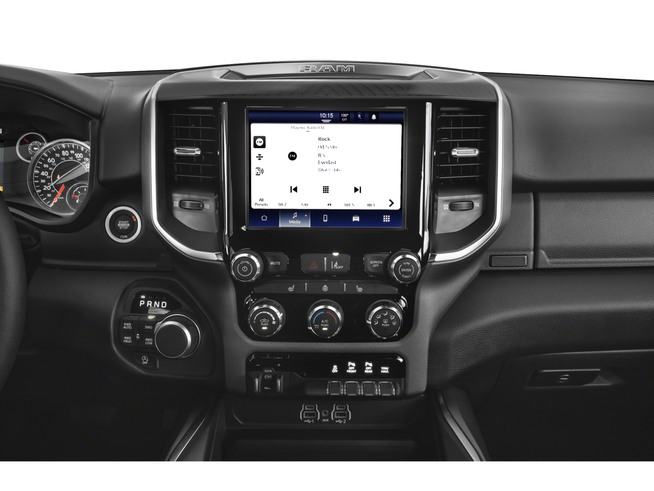 115V Auxiliary Power Outlet, 115V Auxiliary Rear Power Outlet, 12 Touchscreen Display, 2nd Row in Floor Storage Bins, 3 Rear Seat Head Restraints, 4 Way Front Headrests, 4-Wheel Disc Brakes, 400W Inverter, 48V Belt Starter Generator, 4G LTE Wi-Fi Hot Spot, 6 Speakers, 9 Amplified Speakers with Subwoofer, ABS brakes, Accent Color Door Handles, Accent Color Premium Power Mirrors, Accent Color Tailgate Handle, Air Conditioning, Air Conditioning ATC with Dual Zone Control, Alloy wheels, AM/FM radio, Anti-Spin Differential Rear Axle, Apple CarPlay, Apple CarPlay/Android Auto, Auto High-beam Headlights, Auto Power-Folding Mirrors, Auto-Dimming Exterior Driver Mirror, Auto-Dimming Rear-View Mirror, Big Horn Level 2 Equipment Group, Black Exterior Mirrors, Black Exterior Truck Badging, Black Headlamp Bezels, Black Interior Accents, Black Painted Exterior Mirrors Caps, Black Premium Power Mirrors, Black Tail Lamp Bezels, Body Color Fender Flares, Body Color Front Bumper, Body Color Rear Bumper with Step Pads, Brake assist, Bucket Seats, Bumpers: chrome, Center Console Parts Module, Cloth Bucket Seats, Cluster 7.0 TFT Color Display, Compass, Configurable Drive Mode, Connected Travel and Traffic Services, Connectivity - US/Canada, Convex Wide-Angle Exterior Mirror Insert, Delay-off headlights, Deluxe Cloth Bucket Seats, Disassociated Touchscreen Display, Driver door bin, Dual Exhaust with Black Tips, Dual front impact airbags, Dual front side impact airbags, Electronic Stability Control, Exterior Mirrors Courtesy Lamps, Exterior Mirrors with Heating Element, Exterior Mirrors with Supplemental Signals, Front anti-roll bar, Front Bucket Seats, Front Center Armrest w/Storage, Front fog lights, Front License Plate Bracket, Front reading lights, Front Seat Back Map Pockets, Front wheel independent suspension, Full Length Floor Console, Fully automatic headlights, Global Telematics Box Module, Glove Box Lamp, Google Android Auto, GPS Antenna Input, GPS Navigation, Grille Black Surround Black Mesh, HD Radio, Heated door mirrors, Heated Front Seats, Heated Steering Wheel, Illuminated entry, Integrated Center Stack Radio, Integrated Voice Command with Bluetooth®, Leather Wrapped Steering Wheel, LED Dome Lamp with on/Off Switch, LED Footwell Lighting, Low tire pressure warning, Manual Adjust 4-Way Driver Seat, Manual Adjust 4-Way Front Passenger Seat, Manual Folding Exterior Mirrors, Media Hub with 2 Charge Only USBs, MOPAR Front and Rear Rubber Floor Mats, MyFlexCare Service Plan, Night Edition, Occupant sensing airbag, Outside temperature display, Overhead airbag, Overhead console, Overhead LED Lamps, Panic alarm, ParkView Rear Back-Up Camera, Passenger door bin, Passenger vanity mirror, Power 2-Way Driver Lumbar Adjust, Power Adjust 8-Way Driver Seat, Power Adjustable Pedals, Power door mirrors, Power steering, Power windows, Premium Overhead Console, Quick Order Package 21Z Big Horn, Radio data system, Radio: Uconnect 5 Navigation with 12.0 Display, Radio: Uconnect 5 W with 8.4 Display, RAM Grille Badge - Black, RAM Grille Badge - Chrome, Rear 60/40 Folding Seat, Rear anti-roll bar, Rear Center Armrest, Rear Power Sliding Window, Rear step bumper, Rear Wheelhouse Liners, Rear Window Defroster, Remote keyless entry, Remote Tailgate Release, Security Alarm, SiriusXM Radio Service, SiriusXM with 360L, Speed control, Steering Wheel Mounted Audio Controls, Sun Visors with Illuminated Vanity Mirrors, Supplier Part Tracking (J-1), Tachometer, Telescoping steering wheel, Tilt steering wheel, Traction control, Trailer Brake Control, Trip computer, Universal Garage Door Opener, USB Host Flip, Variably intermittent wipers, Voltmeter, Wheels: 20 x 9.0 Aluminum Painted Clad.