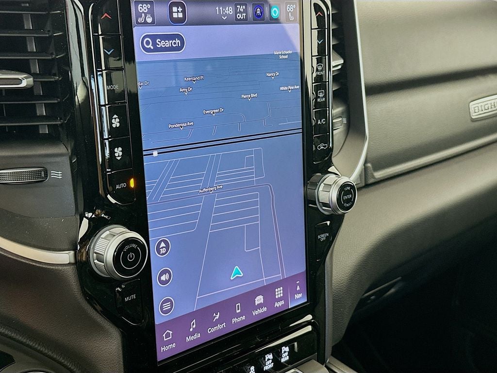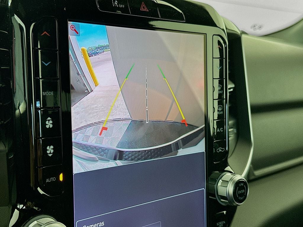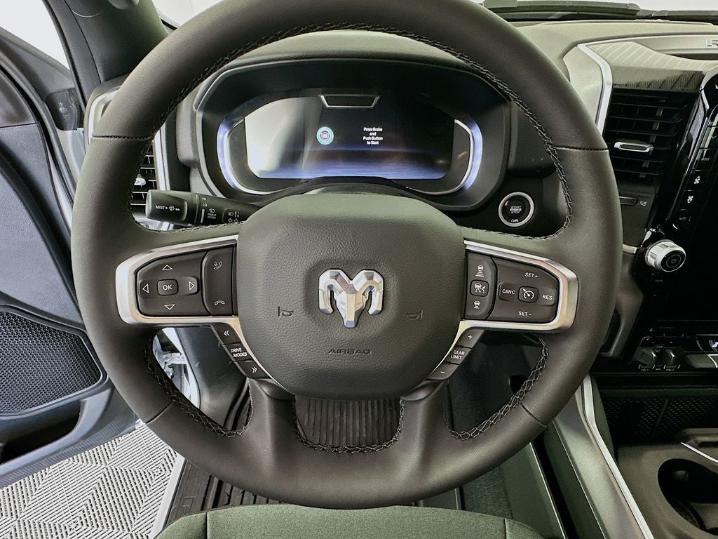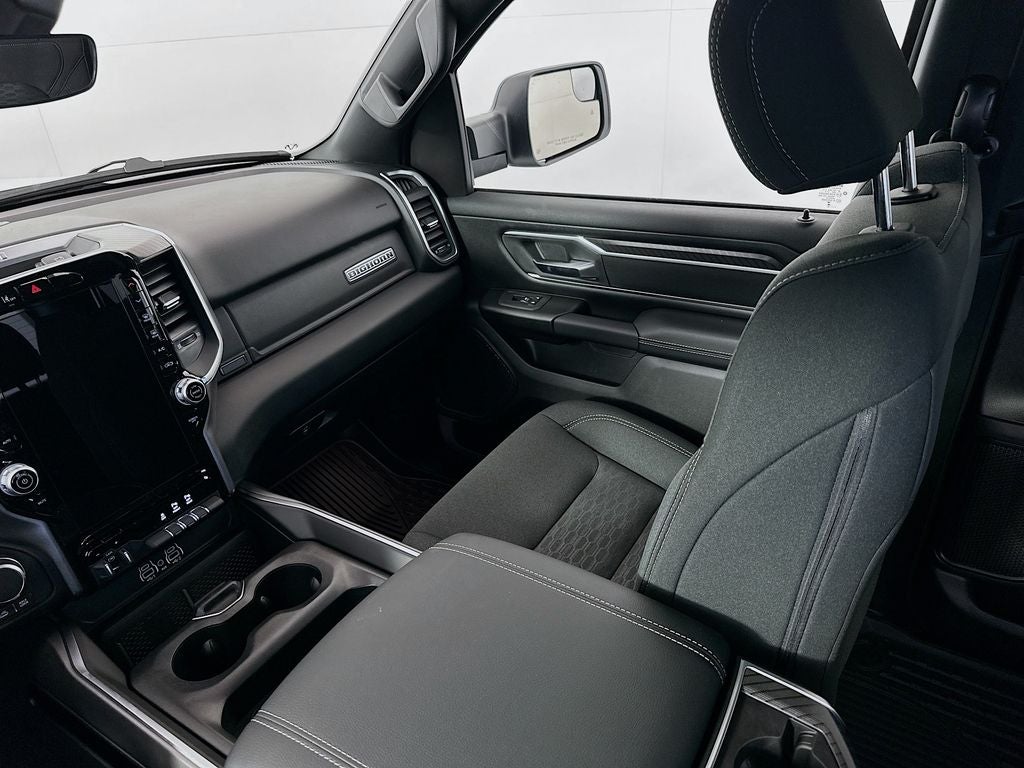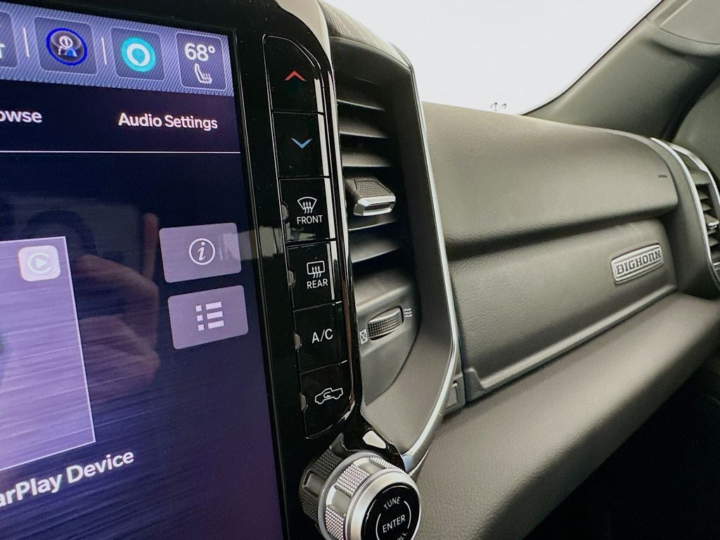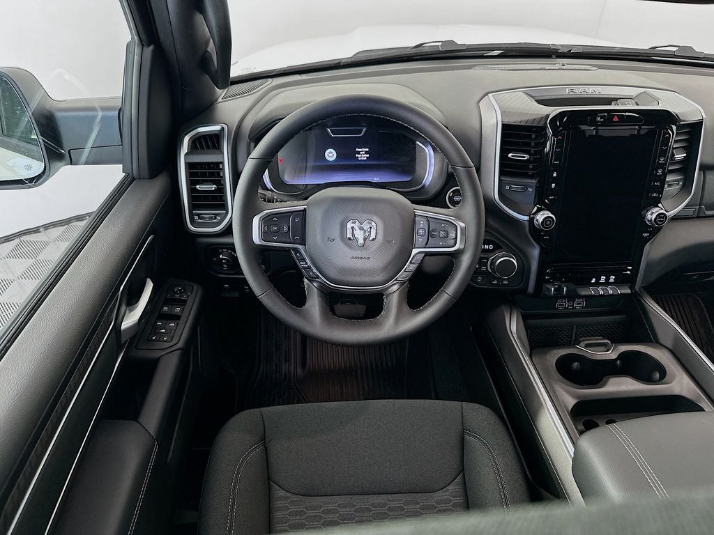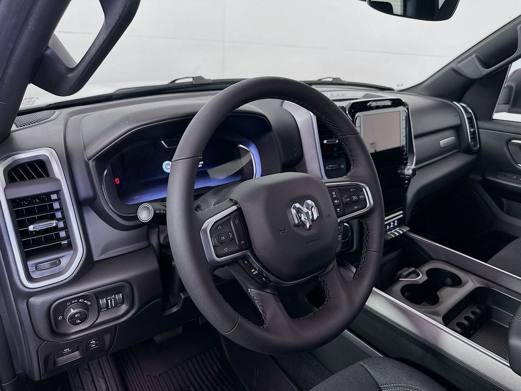 115V Auxiliary Power Outlet, 115V Auxiliary Rear Power Outlet, 12 Touchscreen Display, 2nd Row in Floor Storage Bins, 3 Rear Seat Head Restraints, 4 Way Front Headrests, 4-Wheel Disc Brakes, 400W Inverter, 48V Belt Starter Generator, 4G LTE Wi-Fi Hot Spot, 6 Speakers, 9 Amplified Speakers with Subwoofer, ABS brakes, Accent Color Door Handles, Accent Color Premium Power Mirrors, Accent Color Tailgate Handle, Air Conditioning, Air Conditioning ATC with Dual Zone Control, Alloy wheels, AM/FM radio, Anti-Spin Differential Rear Axle, Apple CarPlay, Apple CarPlay/Android Auto, Auto High-beam Headlights, Auto Power-Folding Mirrors, Auto-Dimming Exterior Driver Mirror, Auto-Dimming Rear-View Mirror, Big Horn Level 2 Equipment Group, Black Exterior Mirrors, Black Exterior Truck Badging, Black Headlamp Bezels, Black Interior Accents, Black Painted Exterior Mirrors Caps, Black Premium Power Mirrors, Black Tail Lamp Bezels, Body Color Fender Flares, Body Color Front Bumper, Body Color Rear Bumper with Step Pads, Brake assist, Bucket Seats, Bumpers: chrome, Center Console Parts Module, Cloth Bucket Seats, Cluster 12 TFT Color Display, Cluster 7.0 TFT Color Display, Compass, Configurable Drive Mode, Connected Travel and Traffic Services, Connectivity - US/Canada, Convex Wide-Angle Exterior Mirror Insert, Delay-off headlights, Deluxe Cloth Bucket Seats, Disassociated Touchscreen Display, Driver door bin, Dual Exhaust with Black Tips, Dual front impact airbags, Dual front side impact airbags, E-Locker Rear Axle, Electronic Stability Control, Exterior Mirrors Courtesy Lamps, Exterior Mirrors with Heating Element, Exterior Mirrors with Supplemental Signals, Front anti-roll bar, Front Bucket Seats, Front Center Armrest w/Storage, Front Extra Heavy Duty Shock Absorbers, Front fog lights, Front License Plate Bracket, Front reading lights, Front Seat Back Map Pockets, Front wheel independent suspension, Full Length Floor Console, Fully automatic headlights, Global Telematics Box Module, Glove Box Lamp, Google Android Auto, GPS Antenna Input, GPS Navigation, Grille Black Surround Black Mesh, HD Radio, Heated door mirrors, Heated Front Seats, Heated Steering Wheel, Illuminated entry, Integrated Center Stack Radio, Integrated Voice Command with Bluetooth®, Leather Wrapped Steering Wheel, LED Dome Lamp with on/Off Switch, LED Footwell Lighting, Low tire pressure warning, Manual Adjust 4-Way Driver Seat, Manual Adjust 4-Way Front Passenger Seat, Manual Folding Exterior Mirrors, Media Hub with 2 Charge Only USBs, MOPAR Front and Rear Rubber Floor Mats, Night Edition, Occupant sensing airbag, Off Road Decals, Off Road Group, Outside temperature display, Overhead airbag, Overhead console, Overhead LED Lamps, Panic alarm, ParkView Rear Back-Up Camera, Passenger door bin, Passenger vanity mirror, Power 2-Way Driver Lumbar Adjust, Power Adjust 8-Way Driver Seat, Power Adjustable Pedals, Power door mirrors, Power steering, Power windows, Premium Overhead Console, Quick Order Package 27Z Big Horn, Radio data system, Radio: Uconnect 5 Navigation with 12.0 Display, Radio: Uconnect 5 W with 8.4 Display, Raised Ride Height, RAM Grille Badge - Black, RAM Grille Badge - Chrome, Rear 60/40 Folding Seat, Rear anti-roll bar, Rear Center Armrest, Rear Extra Heavy Duty Shock Absorbers, Rear Power Sliding Window, Rear step bumper, Rear Underseat Compartment Storage, Rear Window Defroster, Remote keyless entry, Remote Tailgate Release, Security Alarm, Selec-Speed Control, SiriusXM Radio Service, SiriusXM with 360L, Speed control, Steering Wheel Mounted Audio Controls, Sun Visors with Illuminated Vanity Mirrors, Supplier Part Tracking (J-1), Tachometer, Telescoping steering wheel, Tilt steering wheel, Tow Hooks, Traction control, Trailer Brake Control, Trip computer, Universal Garage Door Opener, USB Host