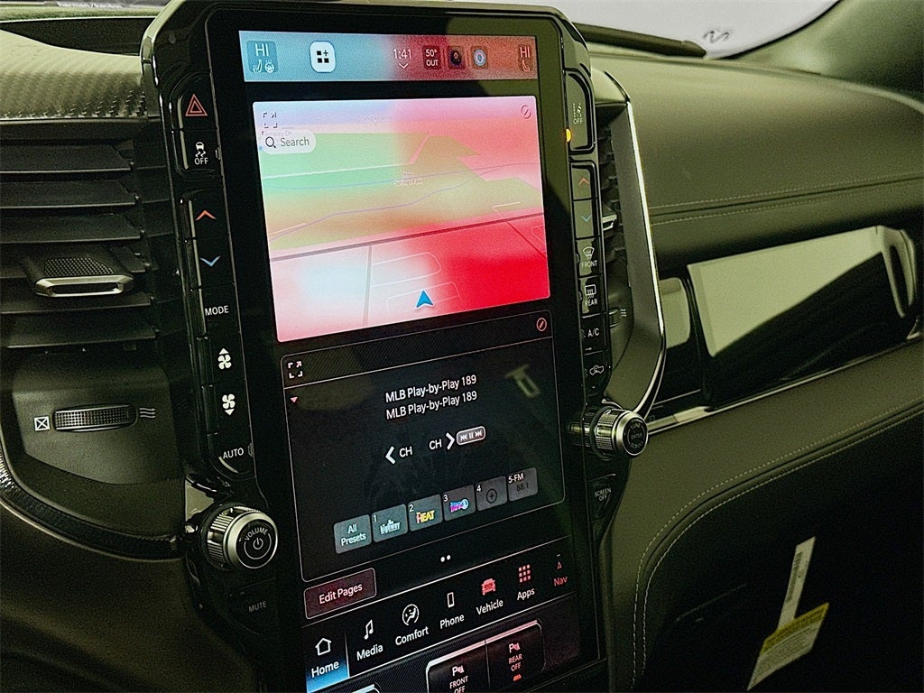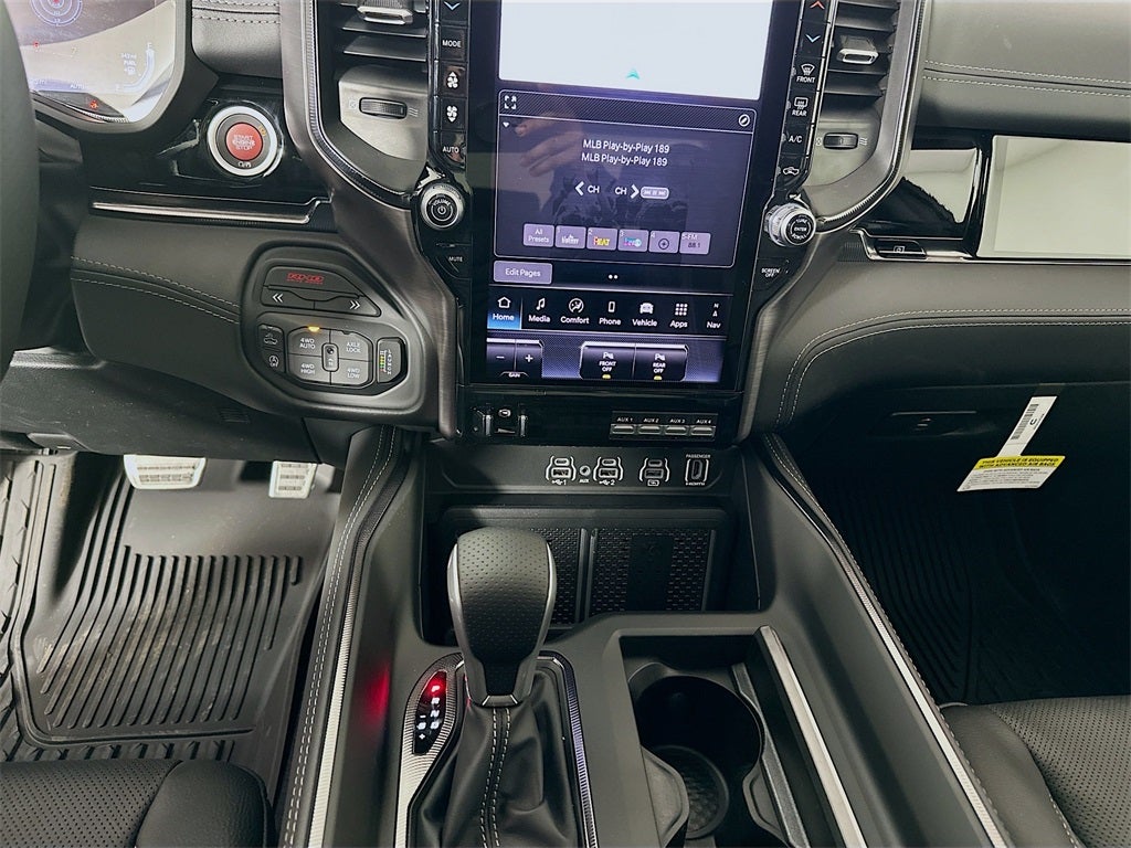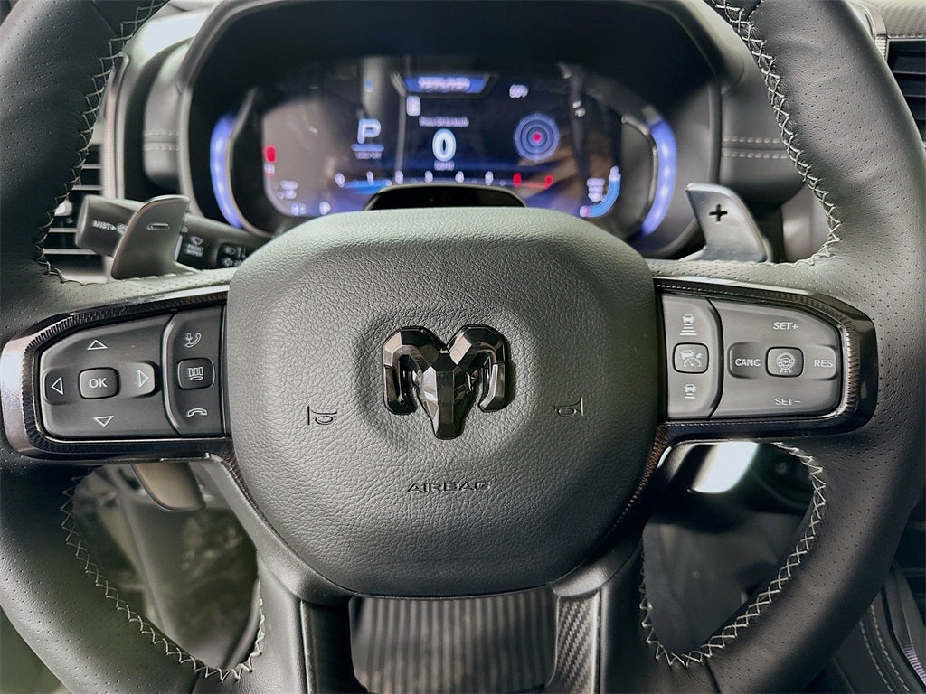 1500 RHO, 4D Crew Cab, 3.0L I6, 8-Speed Automatic, 4WD, Canyon Lake, Black Leather, 10 Speakers, 12-Way/1-Way Trailer Connector, 14.4 Touchscreen Display, 240 Amp Alternator, 4G LTE Wi-Fi Hot Spot, Adaptive suspension, Adjustable pedals, Apple CarPlay/Android Auto, Auto High-beam Headlights, Auto Power-Folding Mirrors, Auto-dimming door mirrors, Auto-Dimming Exterior Driver Mirror, Auto-dimming Rear-View mirror, Automatic temperature control, Bed Utility Group, Connected Travel and Traffic Services, Connectivity - US/Canada, Delay-off headlights, Disassociated Touchscreen Display, Dome Dual LED Reading Lamp, Driver Power Seat Back Massage, Driver Seat Memory, Driver/Passenger Wrapped Assist Handles, Drowsy Driver Detection, Dual Wireless Charging Pad, Dual-Pane Panoramic Sunroof, Evasive Steer Assist, Exterior 115V AC Outlet, Exterior Mirrors Courtesy Lamps, Exterior Mirrors with Heating Element, Exterior Mirrors with Memory, Exterior Mirrors with Supplemental Signals, Exterior Parking Camera Rear, Flareside Box, Front dual zone A/C, Front fog lights, Front Passenger Interactive Display, Front Passenger Power Seat Back Massage, Full Length Premium Upgraded Floor Console, Fully automatic headlights, Garage door transmitter, GPS Navigation, Hands-Free Active Driving Assist System, Harman/Kardon 19 Speaker Premium Sound, HD Radio, Heads-Up Display, Heated front seats, Heated Second Row Seats, Heated steering wheel, Illuminated entry, Integrated Center Stack Radio, Integrated Voice Command with Bluetooth®, Intersection Collision Assist System, Leather/Carbon Flat-Bottom Steering Wheel, LED CHMSL Lamp, Luxury Front Door Trim Panel, MOPAR 4 Adjustable Cargo Tie-Down Hooks, MOPAR Deployable Bed Step, Navigation System, Outside temperature display, Power Adjustable Pedals with Memory, Power Tailgate, Premium Wrapped Instrument Panel Bezel, Quick Order Package 22Y RHO, Radio: Uconnect 5 Nav with 14.4 Display, Radio/Driver Seat/Mirrors/Pedals Memory, Rain Sensitive Windshield Wipers, Real Carbon Fiber Interior Accents, Rear 60/40 Folding Split Recline Seat, Remote keyless entry, RHO Level 1 Equipment Group, Security system, SiriusXM Radio Service, Smartphone as a Key Capable, Steering wheel mounted audio controls, Surround View Camera System, Traffic Sign Recognition, USB Host Flip, Ventilated Front Seats, Ventilated Rear Seats, 3.92 Rear Axle Ratio, 4-Wheel Disc Brakes, ABS brakes, Air Conditioning, Alloy wheels, AM/FM radio, Brake assist, Compass, Driver door bin, Driver vanity mirror, Dual front impact airbags, Dual front side impact airbags, Electronic Stability Control, Front anti-roll bar, Front Bucket Seats, Front Center Armrest w/Storage, Front License Plate Bracket, Front reading lights, Front wheel independent suspension, Heated door mirrors, Leather Shift Knob, Leather steering wheel, Leather Trimmed Bucket Seats, Low tire pressure warning, Manufacturer's Statement of Origin, MOPAR RHO Exterior Graphics, Occupant sensing airbag, Overhead airbag, Overhead console, Panic alarm, Passenger door bin, Passenger vanity mirror, Power door mirrors, Power driver seat, Power passenger seat, Power steering, Power windows, Radio data system, Radio: Uconnect 5 Navigation with 12.0 Display, Rear reading lights, Rear seat center armrest, Rear step bumper, Rear window defroster, Speed control, Split folding rear seat, Sport steering wheel, Tachometer, Telescoping steering wheel, Tilt steering wheel, Traction control, Trip computer, Turn signal indicator mirrors, Variably intermittent wipers, Voltmeter, Wheels: 18 x 9 Black Paint/Polish Aluminum, 1500 RHO, 4D Crew Cab, 3.0L I6, 8-Speed Automatic, 4WD, Canyon Lake, Black Leather, 10 Speakers, 12-Way/1-Way Trailer Connector, 14.4 Touchscreen Display, 240 Amp Alternator, 4G LTE Wi-Fi Hot Spot, Adaptive suspension, Adjustable pedals, Apple CarPlay/Android Auto, Auto High-beam Headlights, Auto Power-Folding Mirr