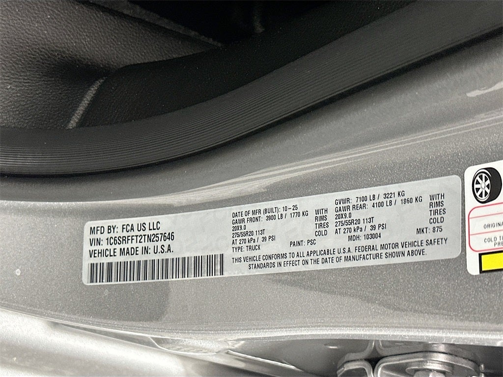 1500 Big Horn/Lone Star, 4D Crew Cab, HEMI 5.7L V8 Multi Displacement VVT eTorque, 8-Speed Automatic, 4WD, Billet Silver Metallic Clearcoat, 115V Auxiliary Power Outlet, 115V Auxiliary Rear Power Outlet, 12 Touchscreen Display, 2nd Row in Floor Storage Bins, 3 Rear Seat Head Restraints, 4 Way Front Headrests, 400W Inverter, 4G LTE Wi-Fi Hot Spot, 9 Amplified Speakers with Subwoofer, Accent Color Door Handles, Accent Color Premium Power Mirrors, Accent Color Tailgate Handle, Air Conditioning ATC with Dual Zone Control, Anti-Spin Differential Rear Axle, Apple CarPlay, Apple CarPlay/Android Auto, Auto High-beam Headlights, Auto Power-Folding Mirrors, Auto-Dimming Exterior Driver Mirror, Auto-Dimming Rear-View Mirror, Big Horn Level 2 Equipment Group, Black Exterior Mirrors, Black Exterior Truck Badging, Black Headlamp Bezels, Black Interior Accents, Black Painted Exterior Mirrors Caps, Black Premium Power Mirrors, Black Tail Lamp Bezels, Body Color Fender Flares, Body Color Front Bumper, Body Color Rear Bumper with Step Pads, Bucket Seats, Center Console Parts Module, Cluster 7.0 TFT Color Display, Configurable Drive Mode, Connected Travel and Traffic Services, Connectivity - US/Canada, Convex Wide-Angle Exterior Mirror Insert, Delay-off headlights, Deluxe Cloth Bucket Seats, Disassociated Touchscreen Display, Dual Exhaust with Black Tips, Electronic Stability Control, Exterior Mirrors Courtesy Lamps, Exterior Mirrors with Heating Element, Exterior Mirrors with Supplemental Signals, Front fog lights, Front Seat Back Map Pockets, Full Length Floor Console, Fully automatic headlights, Global Telematics Box Module, Glove Box Lamp, Google Android Auto, GPS Antenna Input, GPS Navigation, Grille Black Surround Black Mesh, HD Radio, Heated Front Seats, Heated Steering Wheel, Integrated Center Stack Radio, Integrated Voice Command with Bluetooth®, Leather Wrapped Steering Wheel, LED Dome Lamp with on/Off Switch, LED Footwell Lighting, Manual Adjust 4-Way Front Passenger Seat, Media Hub with 2 Charge Only USBs, Night Edition, Overhead LED Lamps, ParkView Rear Back-Up Camera, Power 2-Way Driver Lumbar Adjust, Power Adjust 8-Way Driver Seat, Power Adjustable Pedals, Premium Overhead Console, Protection Group, Quick Order Package 27Z Big Horn, Radio: Uconnect 5 Navigation with 12.0 Display, RAM Grille Badge - Black, Rear 60/40 Folding Seat, Rear Center Armrest, Rear Power Sliding Window, Rear Window Defroster, Remote Tailgate Release, Security Alarm, SiriusXM Radio Service, SiriusXM with 360L, Steering Wheel Mounted Audio Controls, Sun Visors with Illuminated Vanity Mirrors, Tow Hooks, Universal Garage Door Opener, USB Host Flip, Wheels: 20 x 9.0 Aluminum Painted Clad, Wheels: 20 x 9 Aluminum Chrome Clad, 4-Wheel Disc Brakes, 48V Belt Starter Generator, 6 Speakers, ABS brakes, Air Conditioning, Alloy wheels, AM/FM radio, Brake assist, Bumpers: chrome, Cloth Bucket Seats, Cluster 12 TFT Color Display, Compass, Dome Dual LED Reading Lamp, Driver door bin, Dual front impact airbags, Dual front side impact airbags, Dual-Pane Panoramic Sunroof, Front anti-roll bar, Front Bucket Seats, Front Center Armrest w/Storage, Front License Plate Bracket, Front reading lights, Front wheel independent suspension, Heated door mirrors, Illuminated entry, Low tire pressure warning, Manual Adjust 4-Way Driver Seat, Manual Folding Exterior Mirrors, Occupant sensing airbag, Outside temperature display, Overhead airbag, Overhead console, Panic alarm, Passenger door bin, Passenger vanity mirror, Power door mirrors, Power steering, Power windows, Radio data system, Radio: Uconnect 5 W with 8.4 Display, RAM Grille Badge - Chrome, Rear anti-roll bar, Rear step bumper, Remote keyless entry, Speed control, Supplier Part Tracking (J-1), Tachometer, Telescoping steering wheel, Tilt steering wheel, Traction contro