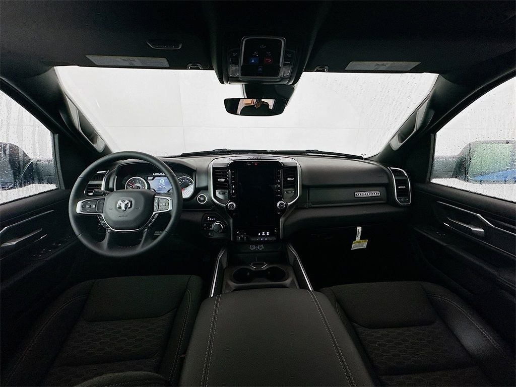 115V Auxiliary Power Outlet, 115V Auxiliary Rear Power Outlet, 12 Touchscreen Display, 2nd Row in Floor Storage Bins, 3 Rear Seat Head Restraints, 4 Way Front Headrests, 4-Wheel Disc Brakes, 400W Inverter, 48V Belt Starter Generator, 4G LTE Wi-Fi Hot Spot, 6 Speakers, 9 Amplified Speakers with Subwoofer, ABS brakes, Accent Color Door Handles, Accent Color Premium Power Mirrors, Accent Color Tailgate Handle, Air Conditioning, Air Conditioning ATC with Dual Zone Control, Alloy wheels, AM/FM radio, Anti-Spin Differential Rear Axle, Apple CarPlay, Apple CarPlay/Android Auto, Auto High-beam Headlights, Auto Power-Folding Mirrors, Auto-Dimming Exterior Driver Mirror, Auto-Dimming Rear-View Mirror, Big Horn Level 2 Equipment Group, Black Exterior Mirrors, Black Exterior Truck Badging, Black Headlamp Bezels, Black Interior Accents, Black Painted Exterior Mirrors Caps, Black Premium Power Mirrors, Black Tail Lamp Bezels, Body Color Fender Flares, Body Color Front Bumper, Body Color Rear Bumper with Step Pads, Brake assist, Bucket Seats, Bumpers: chrome, Center Console Parts Module, Cloth Bucket Seats, Cluster 7.0 TFT Color Display, Compass, Configurable Drive Mode, Connected Travel and Traffic Services, Connectivity - US/Canada, Convex Wide-Angle Exterior Mirror Insert, Delay-off headlights, Deluxe Cloth Bucket Seats, Disassociated Touchscreen Display, Driver door bin, Dual Exhaust with Black Tips, Dual front impact airbags, Dual front side impact airbags, Electronic Stability Control, Exterior Mirrors Courtesy Lamps, Exterior Mirrors with Heating Element, Exterior Mirrors with Supplemental Signals, Front anti-roll bar, Front Bucket Seats, Front Center Armrest w/Storage, Front fog lights, Front License Plate Bracket, Front reading lights, Front Seat Back Map Pockets, Front wheel independent suspension, Full Length Floor Console, Fully automatic headlights, Global Telematics Box Module, Glove Box Lamp, Google Android Auto, GPS Antenna Input, GPS Navigation, Grille Black Surround Black Mesh, HD Radio, Heated door mirrors, Heated Front Seats, Heated Steering Wheel, Illuminated entry, Integrated Center Stack Radio, Integrated Voice Command with Bluetooth®, Leather Wrapped Steering Wheel, LED Dome Lamp with on/Off Switch, LED Footwell Lighting, Low tire pressure warning, Manual Adjust 4-Way Driver Seat, Manual Adjust 4-Way Front Passenger Seat, Manual Folding Exterior Mirrors, Media Hub with 2 Charge Only USBs, Night Edition, Occupant sensing airbag, Outside temperature display, Overhead airbag, Overhead console, Overhead LED Lamps, Panic alarm, ParkView Rear Back-Up Camera, Passenger door bin, Passenger vanity mirror, Power 2-Way Driver Lumbar Adjust, Power Adjust 8-Way Driver Seat, Power Adjustable Pedals, Power door mirrors, Power steering, Power windows, Premium Overhead Console, Quick Order Package 27Z Big Horn, Radio data system, Radio: Uconnect 5 Navigation with 12.0 Display, Radio: Uconnect 5 W with 8.4 Display, RAM Grille Badge - Black, RAM Grille Badge - Chrome, Rear 60/40 Folding Seat, Rear anti-roll bar, Rear Center Armrest, Rear Power Sliding Window, Rear step bumper, Rear Window Defroster, Remote keyless entry, Remote Tailgate Release, Security Alarm, SiriusXM Radio Service, SiriusXM with 360L, Speed control, Steering Wheel Mounted Audio Controls, Sun Visors with Illuminated Vanity Mirrors, Supplier Part Tracking (J-1), Tachometer, Telescoping steering wheel, Tilt steering wheel, Traction control, Trailer Brake Control, Trip computer, Universal Garage Door Opener, USB Host Flip, Variably intermittent wipers, Voltmeter, Wheels: 20 x 9.0 Aluminum Painted Clad.