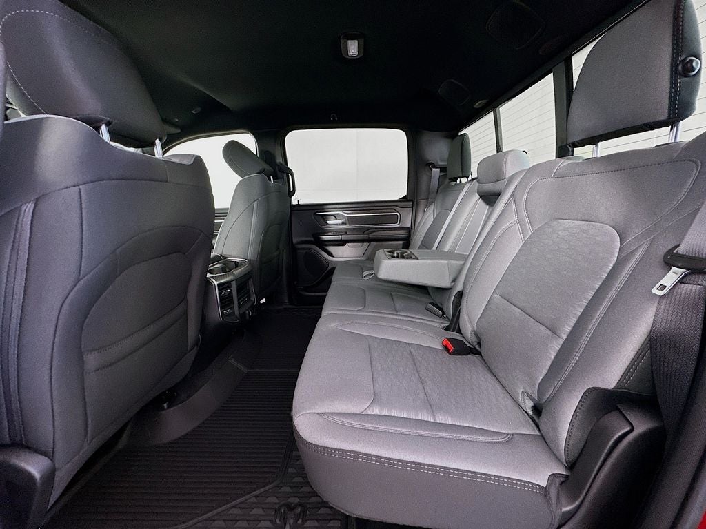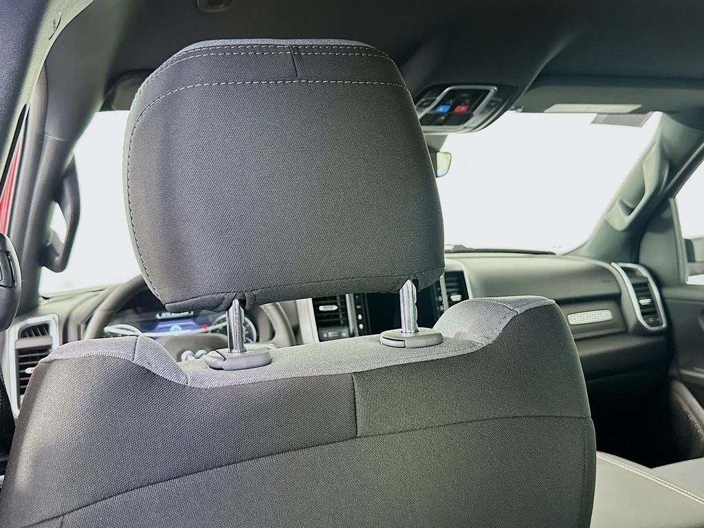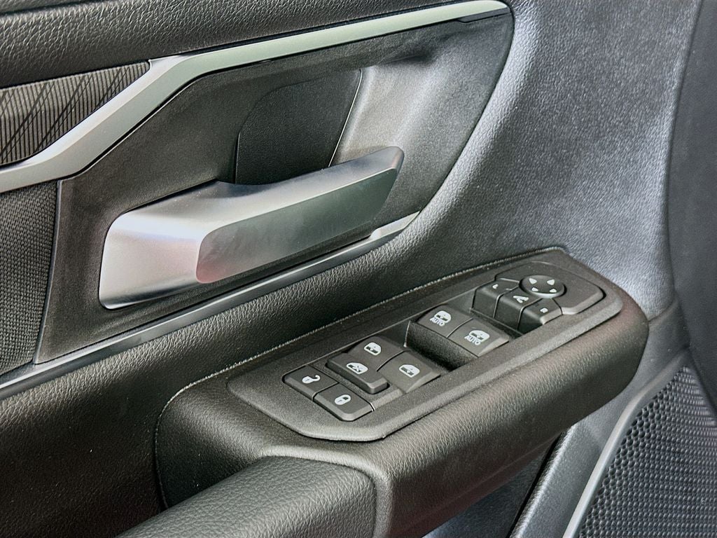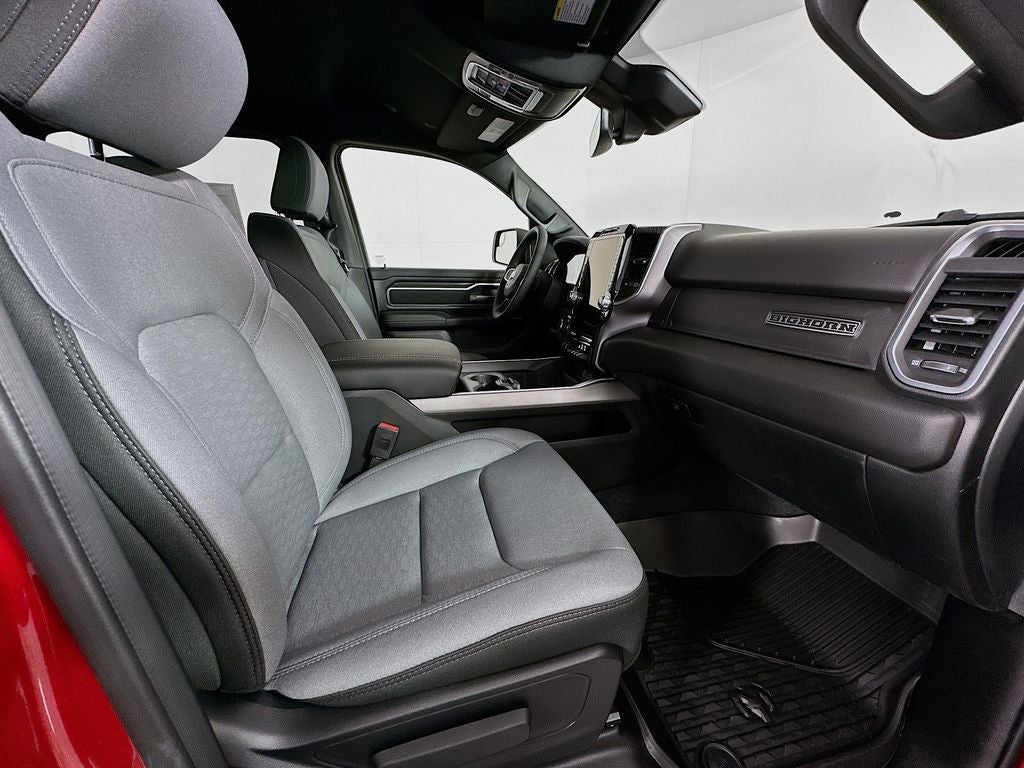 115V Auxiliary Power Outlet, 115V Auxiliary Rear Power Outlet, 12 Touchscreen Display, 2nd Row in Floor Storage Bins, 3 Rear Seat Head Restraints, 33 Gallon Fuel Tank, 4 Way Front Headrests, 4-Wheel Disc Brakes, 400W Inverter, 48V Belt Starter Generator, 4G LTE Wi-Fi Hot Spot, 6 Speakers, 9 Amplified Speakers with Subwoofer, ABS brakes, Air Conditioning, Air Conditioning ATC with Dual Zone Control, Alloy wheels, AM/FM radio, Anti-Spin Differential Rear Axle, Apple CarPlay, Apple CarPlay/Android Auto, Auto High-beam Headlights, Auto Power-Folding Mirrors, Auto-Dimming Exterior Driver Mirror, Auto-Dimming Rear-View Mirror, Big Horn Level 2 Equipment Group, Black Exterior Mirrors, Black Premium Power Mirrors, Body Color Fender Flares, Brake assist, Bucket Seats, Bumpers: chrome, Center Console Parts Module, Cloth Bucket Seats, Cluster 7.0 TFT Color Display, Compass, Configurable Drive Mode, Connected Travel and Traffic Services, Connectivity - US/Canada, Convex Wide-Angle Exterior Mirror Insert, Delay-off headlights, Deluxe Cloth Bucket Seats, Disassociated Touchscreen Display, Driver door bin, Dual front impact airbags, Dual front side impact airbags, Electronic Stability Control, Exterior Mirrors Courtesy Lamps, Exterior Mirrors with Heating Element, Exterior Mirrors with Supplemental Signals, Front anti-roll bar, Front Bucket Seats, Front Center Armrest w/Storage, Front fog lights, Front License Plate Bracket, Front reading lights, Front Seat Back Map Pockets, Front wheel independent suspension, Full Length Floor Console, Fully automatic headlights, Global Telematics Box Module, Glove Box Lamp, Google Android Auto, GPS Antenna Input, GPS Navigation, HD Radio, Heated door mirrors, Heated Front Seats, Heated Steering Wheel, Illuminated entry, Integrated Center Stack Radio, Integrated Voice Command with Bluetooth®, Leather Wrapped Steering Wheel, LED Dome Lamp with on/Off Switch, LED Footwell Lighting, Low tire pressure warning, Manual Adjust 4-Way Driver Seat, Manual Adjust 4-Way Front Passenger Seat, Manual Folding Exterior Mirrors, Media Hub with 2 Charge Only USBs, MOPAR Front and Rear Rubber Floor Mats, Occupant sensing airbag, Outside temperature display, Overhead airbag, Overhead console, Overhead LED Lamps, Panic alarm, ParkView Rear Back-Up Camera, Passenger door bin, Passenger vanity mirror, Power 2-Way Driver Lumbar Adjust, Power Adjust 8-Way Driver Seat, Power Adjustable Pedals, Power door mirrors, Power steering, Power windows, Premium Overhead Console, Quick Order Package 27Z Big Horn, Radio data system, Radio: Uconnect 5 Navigation with 12.0 Display, Radio: Uconnect 5 W with 8.4 Display, RAM Grille Badge - Chrome, Rear 60/40 Folding Seat, Rear anti-roll bar, Rear Center Armrest, Rear Power Sliding Window, Rear step bumper, Rear Window Defroster, Remote keyless entry, Remote Tailgate Release, Security Alarm, SiriusXM Radio Service, SiriusXM with 360L, Speed control, Steering Wheel Mounted Audio Controls, Sun Visors with Illuminated Vanity Mirrors, Supplier Part Tracking (J-1), Tachometer, Telescoping steering wheel, Tilt steering wheel, Traction control, Trailer Brake Control, Trip computer, Universal Garage Door Opener, USB Host Flip, Variably intermittent wipers, Voltmeter.