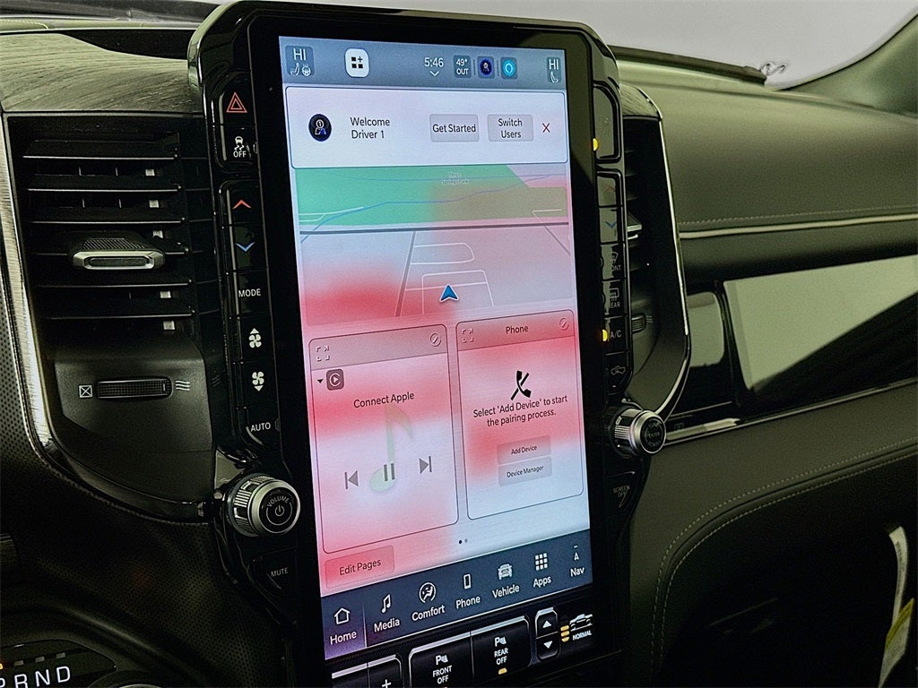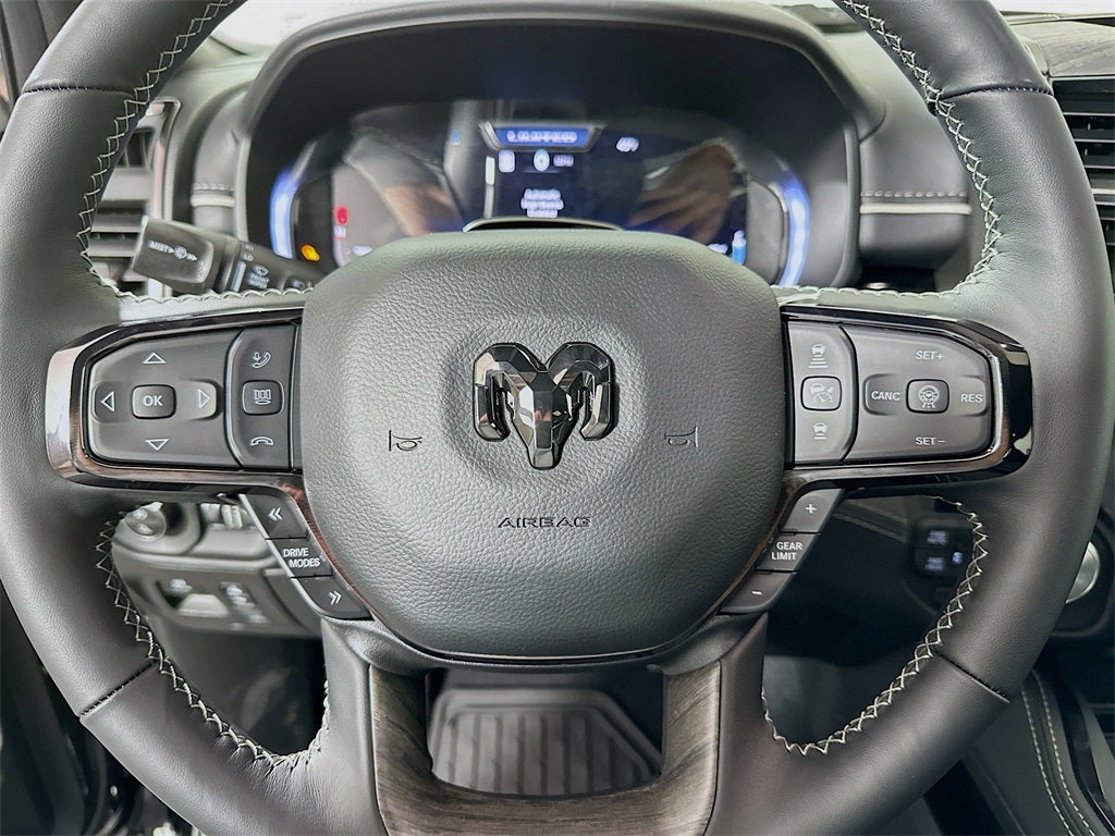 1500 Limited, 4D Crew Cab, 3.0L I6, 8-Speed Automatic, 4WD, Diamond Black Crystal Pearlcoat, Black Leather, 12-Way/1-Way Trailer Connector, 14.4 Touchscreen Display, 19 Speakers, 240 Amp Alternator, 4G LTE Wi-Fi Hot Spot, Accent Color Door Handles, Accent Color Premium Power Mirrors, Accent Color Tailgate Handle, Active Noise Control System, Adjustable pedals, Air Conditioning, Apple CarPlay, Apple CarPlay/Android Auto, Audio memory, Auto Power-Folding Mirrors, Auto-dimming door mirrors, Auto-Dimming Exterior Driver Mirror, Auto-dimming Rear-View mirror, Auto-leveling suspension, Automatic temperature control, Bed Utility Group, Black Day Light Opening Moldings, Black Exterior Truck Badging, Black Grille Surround Texture 7 Black, Black Headlamp Bezels, Black Painted Exterior Mirrors Caps, Black Tail Lamp Bezels, Body Color Front Bumper, Body Color Rear Bumper with Step Pads, Connected Travel and Traffic Services, Connectivity - US/Canada, Convex Wide-Angle Exterior Mirror Insert, Disassociated Touchscreen Display, Dome Dual LED Reading Lamp, Drowsy Driver Detection, Dual Exhaust with Black Tips, Dual-Pane Panoramic Sunroof, Electronic Stability Control, Evasive Steer Assist, Exterior 115V AC Outlet, Exterior Mirrors Courtesy Lamps, Exterior Mirrors with Heating Element, Exterior Mirrors with Memory, Exterior Mirrors with Supplemental Signals, Exterior Parking Camera Rear, Front dual zone A/C, Garage door transmitter, Global Telematics Box Module, Google Android Auto, GPS Antenna Input, GPS Navigation, Hands-Free Active Driving Assist System, HD Radio, Heads-Up Display, Heated front seats, Heated rear seats, Heated steering wheel, Illuminated entry, Integrated Center Stack Radio, Integrated Voice Command with Bluetooth®, Intersection Collision Assist System, LED CHMSL Lamp, LED Dome/Reading Lamp, Limited Level A Equipment Group, MOPAR 4 Adjustable Cargo Tie-Down Hooks, Navigation System, Night Edition, Pirelli Brand Tires, Quick Order Package 22M Limited, Radio: Uconnect 5 Nav with 14.4 Display, Rain sensing wipers, RAM Grille Badge - Black, RamBox Cargo Management System, Security system, SiriusXM Radio Service, SiriusXM with 360L, Smartphone as a Key Capable, Sport Performance Hood, Surround View Camera System, Traffic Sign Recognition, Trailer Brake Control, Tri-Fold Tonneau Cover, Turn signal indicator mirrors, USB Host Flip, Variably intermittent wipers, Ventilated front seats, Ventilated rear seats, Wheels: 22 x 9 Premium Black Aluminum, 3.92 Rear Axle Ratio, 4-Wheel Disc Brakes, ABS brakes, Alloy wheels, AM/FM radio, Auto High-beam Headlights, Bodyside moldings, Brake assist, Bumpers: chrome, Chrome Exterior Mirrors, Compass, Delay-off headlights, Driver door bin, Driver vanity mirror, Dual front impact airbags, Dual front side impact airbags, Front anti-roll bar, Front Bucket Seats, Front Center Armrest w/Storage, Front fog lights, Front License Plate Bracket, Front reading lights, Front wheel independent suspension, Fully automatic headlights, Genuine wood console insert, Genuine wood dashboard insert, Genuine wood door panel insert, Heated door mirrors, Leather steering wheel, Low tire pressure warning, Memory seat, Occupant sensing airbag, Outside temperature display, Overhead airbag, Overhead console, Panic alarm, Passenger door bin, Passenger vanity mirror, Pedal memory, Power door mirrors, Power driver seat, Power passenger seat, Power steering, Power windows, Premium Quilted Leather Bucket Seats, Radio data system, Radio: Uconnect 5 Navigation with 12.0 Display, Rear anti-roll bar, Rear reading lights, Rear seat center armrest, Rear step bumper, Rear window defroster, Remote keyless entry, Speed control, Split folding rear seat, Steering wheel mounted audio controls, Tachometer, Telescoping steering wheel, Tilt steering wheel, Traction control, Trip computer, Voltmeter, Wheels: 20 x 9 Premium Paint/Pol