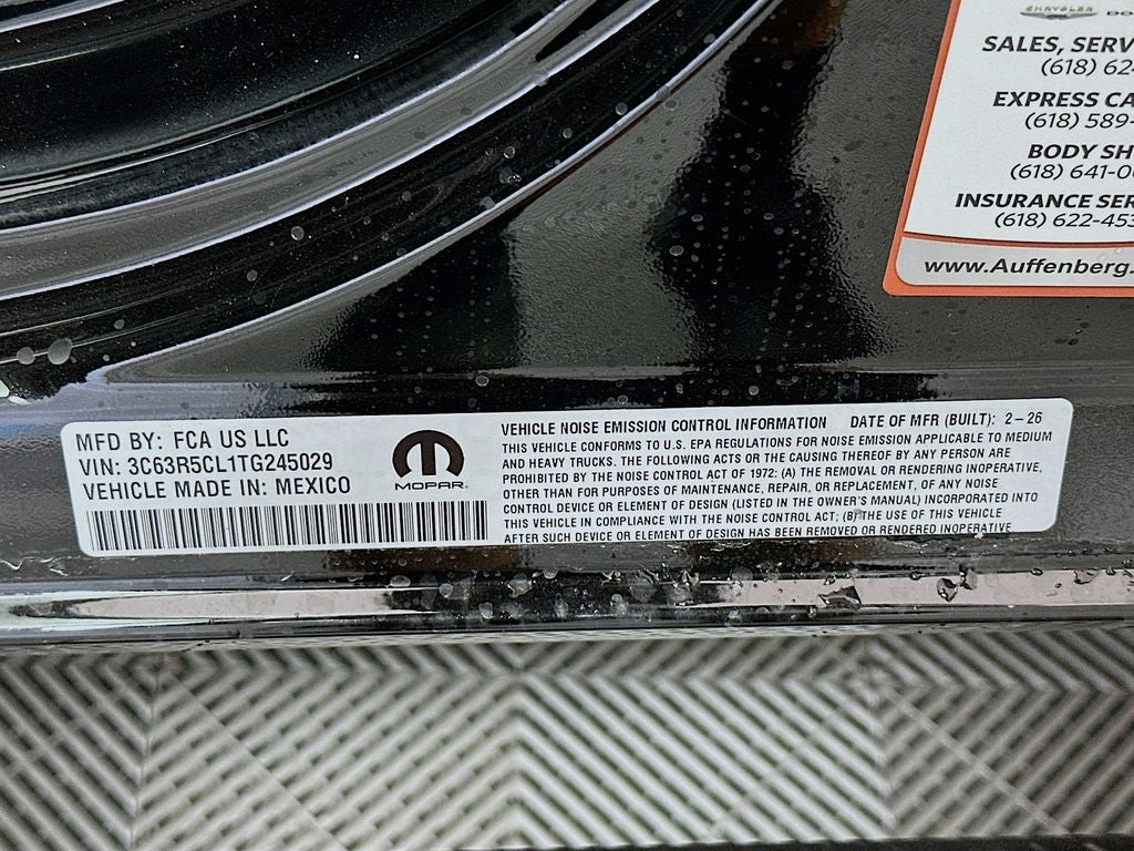 2500 Tradesman, 4D Crew Cab, 6.7L I6, 8-Speed Automatic, 4WD, Diamond Black Crystal Pearlcoat, 115-Volt Auxiliary Front Power Outlet, 12 Touchscreen Display, 2 Way Rear Headrest Seat, 4 Way Front Headrests, 40/20/40 Split Bench Seat, 400W Inverter, 4G LTE Wi-Fi Hot Spot, 5th Wheel/Gooseneck Towing Prep Group, Air Conditioning ATC with Dual Zone Control, Alexa Built-in, Apple CarPlay, Apple CarPlay/Android Auto, Auto Power-Folding Mirrors, Auto-Dimming Rear-View Mirror, Bed Convenience Group, Black Exterior Mirrors, Black Wheel Center Hub, Body Color Grille-Surround, Carpet Floor Covering, Cloth 40/20/40 Bench Seat, Connected Travel and Traffic Services, Connectivity - US/Canada, Delay-off headlights, Disassociated Touchscreen Display, Emergency Vehicle Alert System (EVAS), Engine Block Heater, Exterior 115V AC Outlet, Exterior Mirrors Courtesy Lamps, Exterior Mirrors with Heating Element, Exterior Mirrors with Supplemental Signals, For Details, Visit DriveUconnect.com, For More Info, Call 800-643-2112, Forward and Reverse Utility Lights, Front and Rear Floor Mats, Front Armrest with Cupholders, Front fog lights, Fully automatic headlights, Global Telematics Box Module, Google Android Auto, GPS Antenna Input, GPS Navigation, HD Radio, Illuminated entry, Integrated Voice Command with Bluetooth®, LED Bed Lighting, Manual Adjust 4-Way Driver Seat, Manual Adjust 4-Way Front Passenger Seat, Mirror Running Lights, Mopar Black Tubular Side Steps, MOPAR Spray in Bedliner, Off-Road Info Pages, Outside temperature display, Painted Front Bumper, Painted Rear Bumper, ParkSense Front/Rear Park Assist System, Power Adjust Mirrors, Power Heated Folding Telescopic Mirrors, Power Telescoping Mirrors, Power-Adjustable Convex Aux Mirrors, Quick Order Package 24C Black Express, Radio: Uconnect 5 Navigation with 12.0 Display, Rear Folding Seat, Rear Power Sliding Window, Remote USB Port - Charge Only, Selectable Tire Fill Alert, SiriusXM Radio Service, SiriusXM with 360L, Sport Performance Hood, Storage Tray, Tinted Acoustic Windshield Glass, Tradesman Level 1 Equipment Group, Trailer Tow Pages, Wheels: 20 x 8.0 Black Painted Aluminum, 4-Wheel Disc Brakes, 6 Speakers, ABS brakes, Air Conditioning, AM/FM radio: SiriusXM, Anti-Spin Differential Rear Axle, Brake assist, Clearance Lamps, Compass, Driver door bin, Dual front impact airbags, Dual front side impact airbags, Electronic Stability Control, Front anti-roll bar, Front Center Armrest w/Storage, Front License Plate Bracket, Front reading lights, Low tire pressure warning, Manual Folding Exterior Mirrors, Manual Telescoping Mirrors, MOPAR Front and Rear Rubber Floor Mats, Occupant sensing airbag, Overhead airbag, Overhead console, Panic alarm, ParkView Rear Back-Up Camera, Passenger door bin, Passenger vanity mirror, Power steering, Power windows, Radio data system, Radio: Uconnect 5 with 8.4 Display, Rear anti-roll bar, Rear step bumper, Rear Wheelhouse Liners, Rear window defroster, Remote keyless entry, Speed control, Tachometer, Tilt steering wheel, Traction control, Variably intermittent wipers, Voltmeter, Wheels: 17 x 7.5 Black Steel Styled, 2500 Tradesman, 4D Crew Cab, 6.7L I6, 8-Speed Automatic, 4WD, Diamond Black Crystal Pearlcoat, 115-Volt Auxiliary Front Power Outlet, 12 Touchscreen Display, 2 Way Rear Headrest Seat, 4 Way Front Headrests, 40/20/40 Split Bench Seat, 400W Inverter, 4G LTE Wi-Fi Hot Spot, 5th Wheel/Gooseneck Towing Prep Group, Air Conditioning ATC with Dual Zone Control, Alexa Built-in, Apple CarPlay, Apple CarPlay/Android Auto, Auto Power-Folding Mirrors, Auto-Dimming Rear-View Mirror, Bed Convenience Group, Black Exterior Mirrors, Black Wheel Center Hub, Body Color Grille-Surround, Carpet Floor Covering, Cloth 40/20/40 Bench Seat, Connected Travel and Traffic Services, Connectivity - US/Canada, Delay-off headlights, Disassociated To