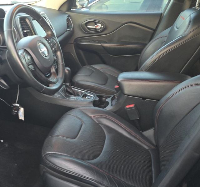 Diamond Black Crystal Pearlcoat 4WD 9-Speed 948TE Automatic 3.2L V6 Cherokee Trailhawk, 4WD, Diamond Black Crystal Pearlcoat, Black Leather, 7 & 4 Pin Wiring Harness, 8.4 Touchscreen Display, Adaptive Cruise Control w/Stop & Go, Advanced Brake Assist, Apple CarPlay/Android Auto, Auto High Beam Headlamp Control, Auto-Dimming Rear-View Mirror, Auxiliary Transmission Oil Cooler, Class III Receiver Hitch, Exterior Mirrors Courtesy Lamps, Exterior Mirrors w/Memory, Exterior Mirrors w/Supplemental Signals, Full Speed Forward Collision Warning Plus, GPS Navigation, Hands-Free Power Liftgate, Heated door mirrors, Heated Front Seats, Heated Steering Wheel, Hill Descent Control, Lane Departure Warning Plus, Parallel/Perpendicular Park/Unpark Assist w/Stop, ParkView Rear Back-Up Camera, Power Driver/Passenger 4-Way Lumbar Adjust, Power Front Driver/Passenger Seats, Power Front/Fixed Rear Full Sunroof, Premium Alpine Speaker System, Premium Leather Trimmed Bucket Seats, Quick Order Package 27L Trailhawk Elite, Radio/Driver Seat/Exterior Mirrors Memory, Rain Sensitive Windshield Wipers, Remote Start System, Security Alarm, Side Distance Warning, Technology Group, Tonneau Cover, Trailer Tow Group, Trailer Tow Wiring Harness, Universal Garage Door Opener, Ventilated Front Seats, Windshield Wiper De-Icer.