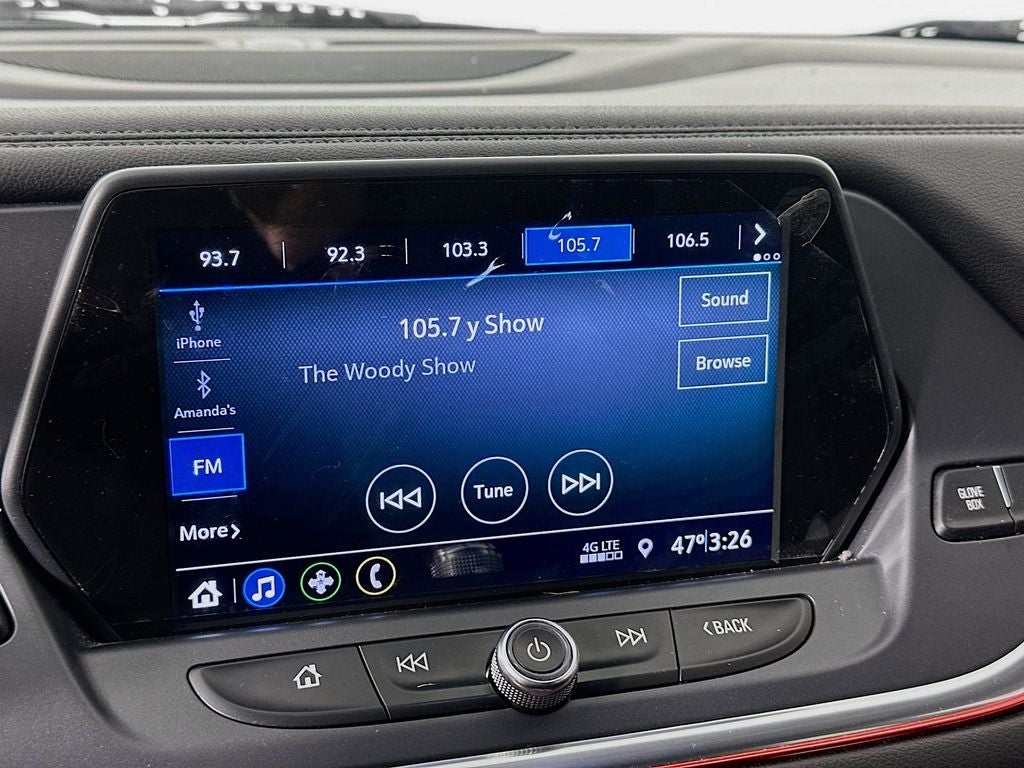 - Audio system, Chevrolet Infotainment 3 system 8" diagonal color touchscreen, AM/FM stereo. Additional features for compatible phones include: Bluetooth® audio streaming for 2 active devices, voice command pass-through to phone, Apple CarPlay and Android Auto capable.